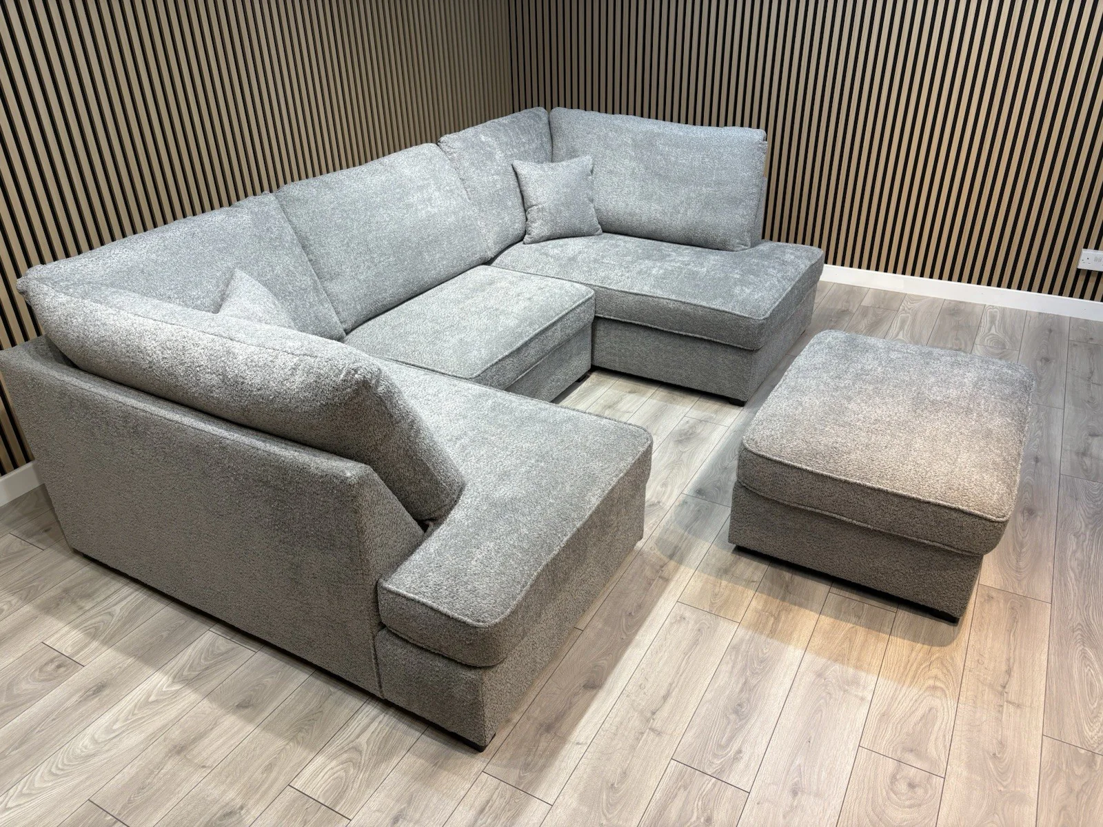 CARNABY Premium Fabric U Shaped Corner Chaise Sofa + Stool.