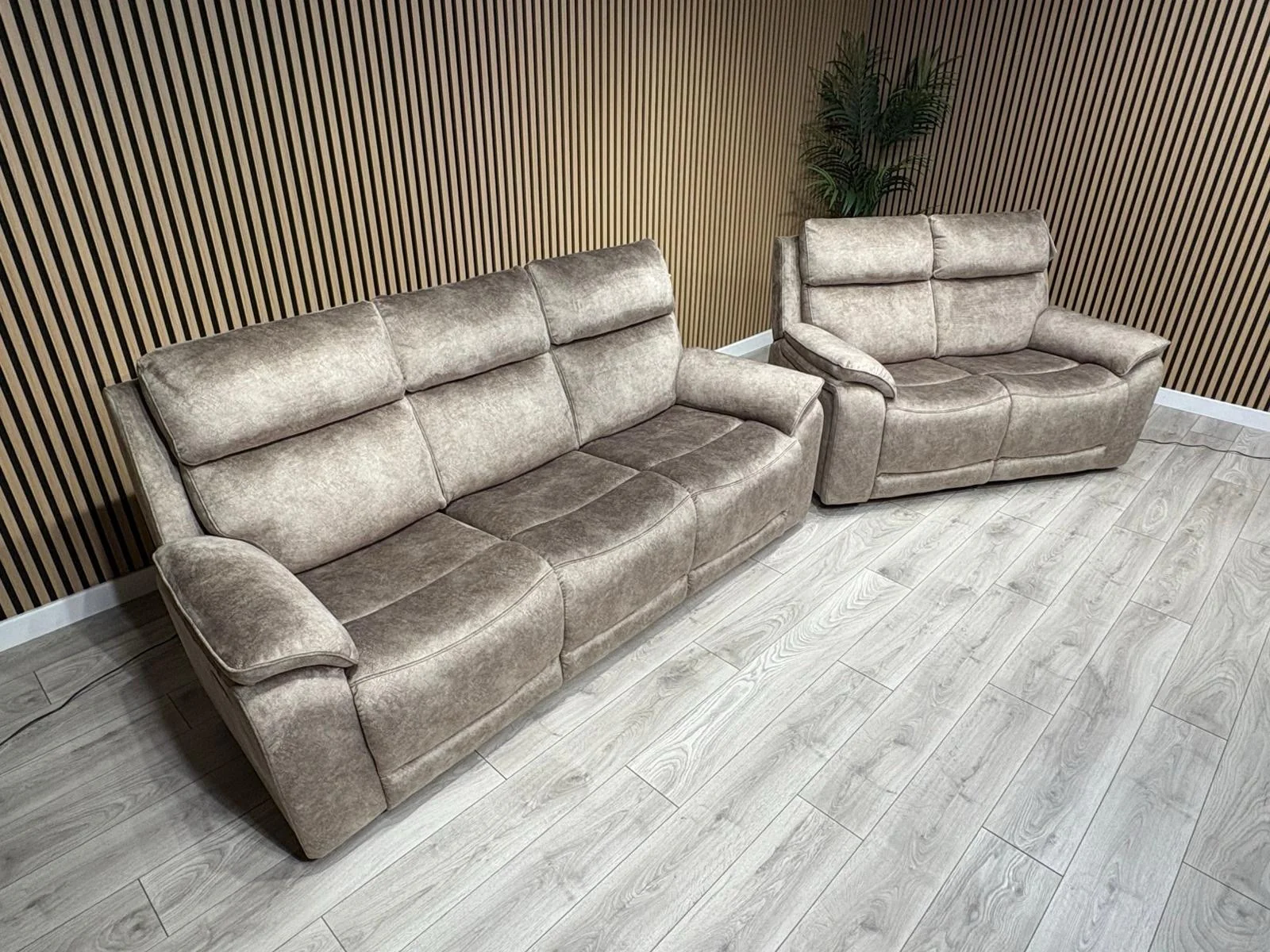 Furniture Village - SLOANE Style Fabric 3 Seater + 2 Seater Power Recliner Sofa Set.