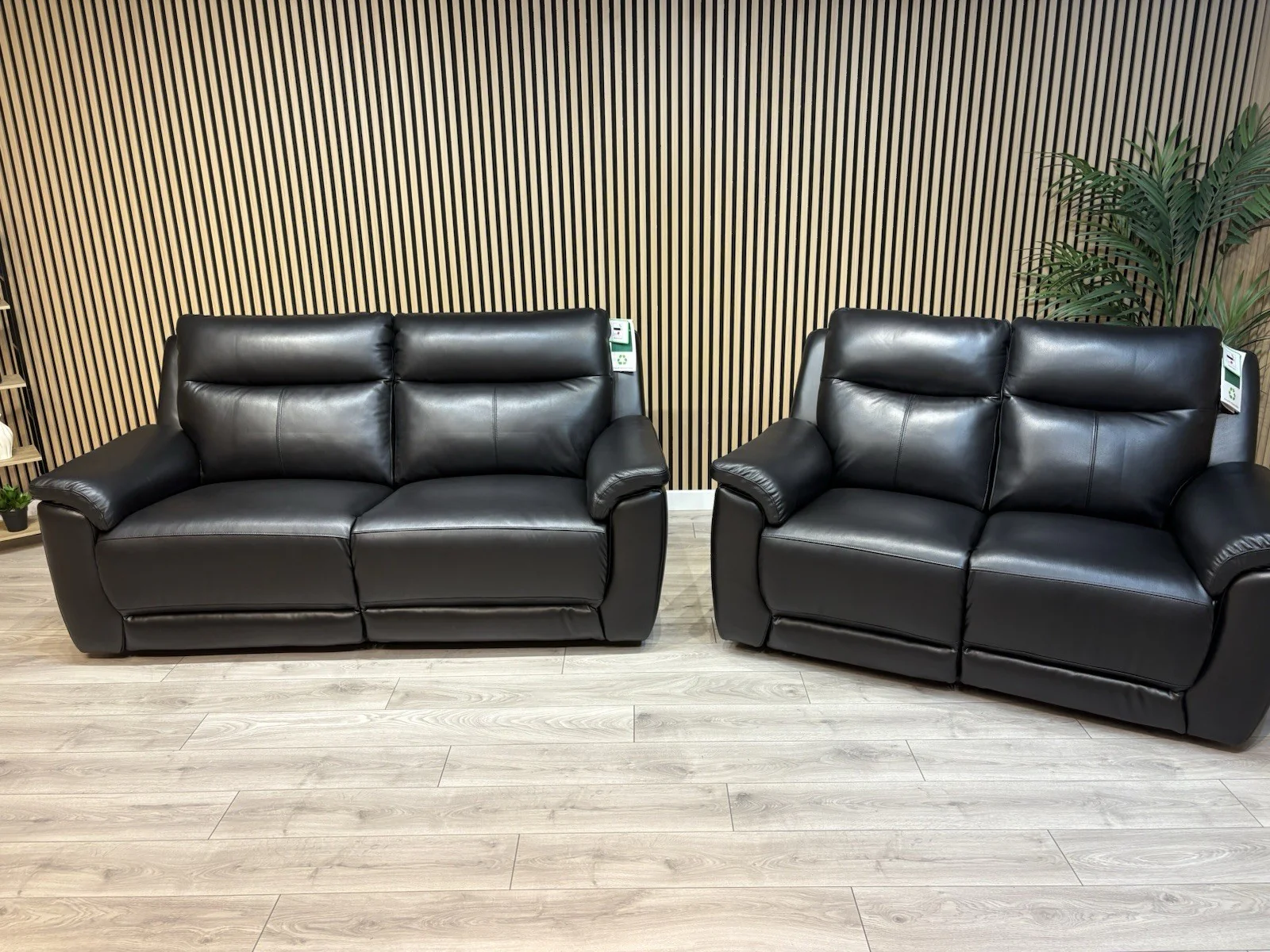 3-seater and 2-seater power recliner sofa in Florida Black leather